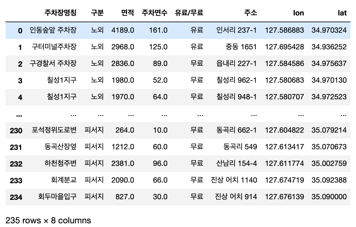 다음으로는 주차장 정보를 합쳐보기로 했습니다.