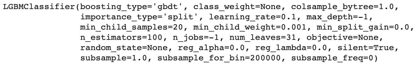 lgb = LGBMClassifier(n_estimators=100)