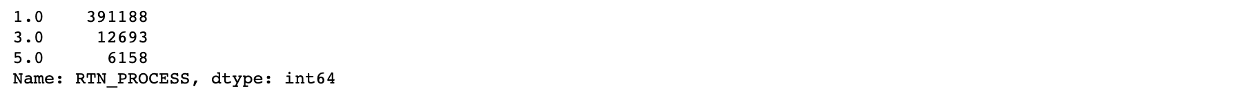 riding_data = riding_data.loc[~riding_data.RTN_PROCESS.isin(["1.0", "3.0", "5.0"]), :]